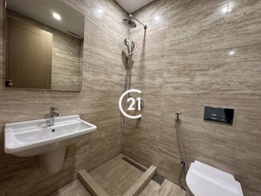 The apartment is equipped with curtain glass, double glazing, central AC with split units, central heating, and a video phone. Residents benefit from building amenities such as a pool, gym, generator, service elevator, and 2 private parking spaces. Security systems and surveillance cameras add peace of mind.