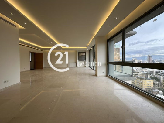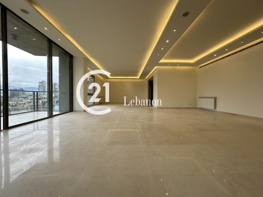 With its prime high-floor positioning and attractive view for the city and the mountain, this apartment represents a perfect balance of comfort and style. Offering over 380 SQM of exceptional space, this apartment is comprised of an elegant reception room, a beautiful dining room , kitchen with maids zone, four bedrooms including two master bedroom with en suite facilities. It ideally benefits from three underground parking spaces , storage room, concierge services and valuable selection of fittings and fixtures . Located in a special distinguished street in Achrafieh, very close to exclusive entertainment addresses and thriving districts, and Beirut central district. In addition to a selection of exclusive restaurants, coffee shops, and boutiques situated throughout the street...